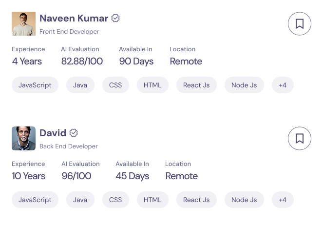 Candidates are pre-screened with real-time AI assessments for 300+ skills. Skip irrelevant profiles and get straight to top performers.